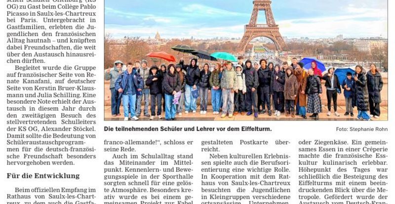 „Vive l’échange!“: Eine Woche Schüleraustausch der Kaufmännischen Schulen Offenburg mit ihrer Partnerschule Collège Pablo Picasso bei Paris stärkte die deutsch-französische Freundschaft